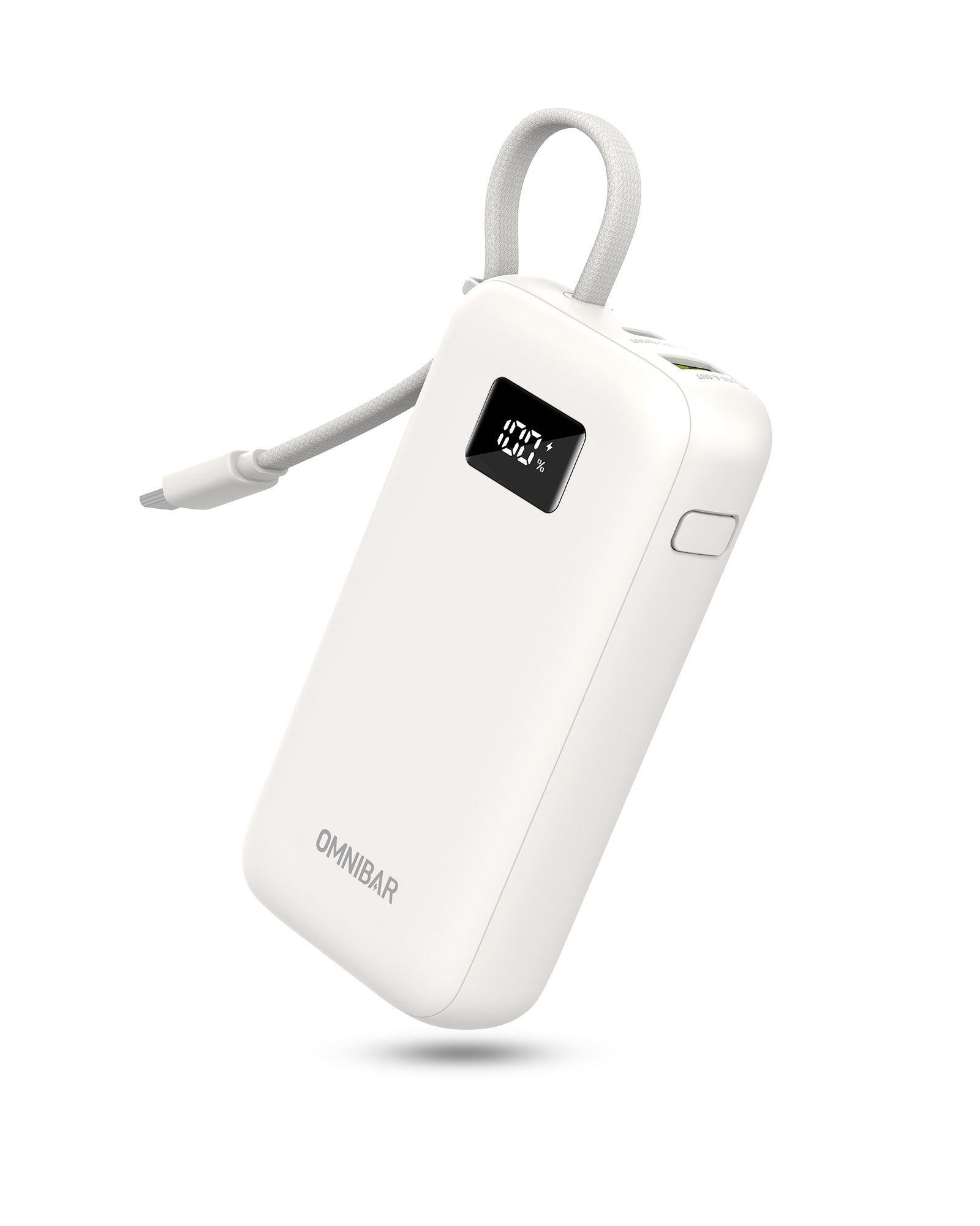 Omnibar 10,000mAh Cable-Connect Power Bank, PD30W, Ivory White
