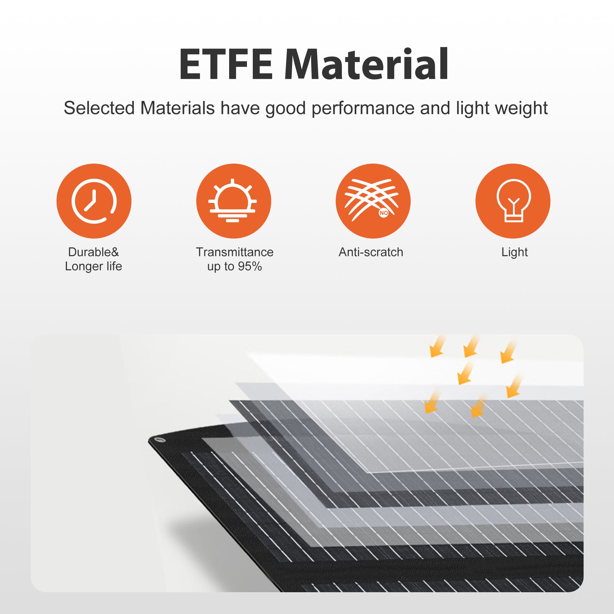 Longer lifespan sourcing from the special construction design, if the surface or body of the panel is broken accidently, the panel can still work smoothly and only result in a little capacity loss.